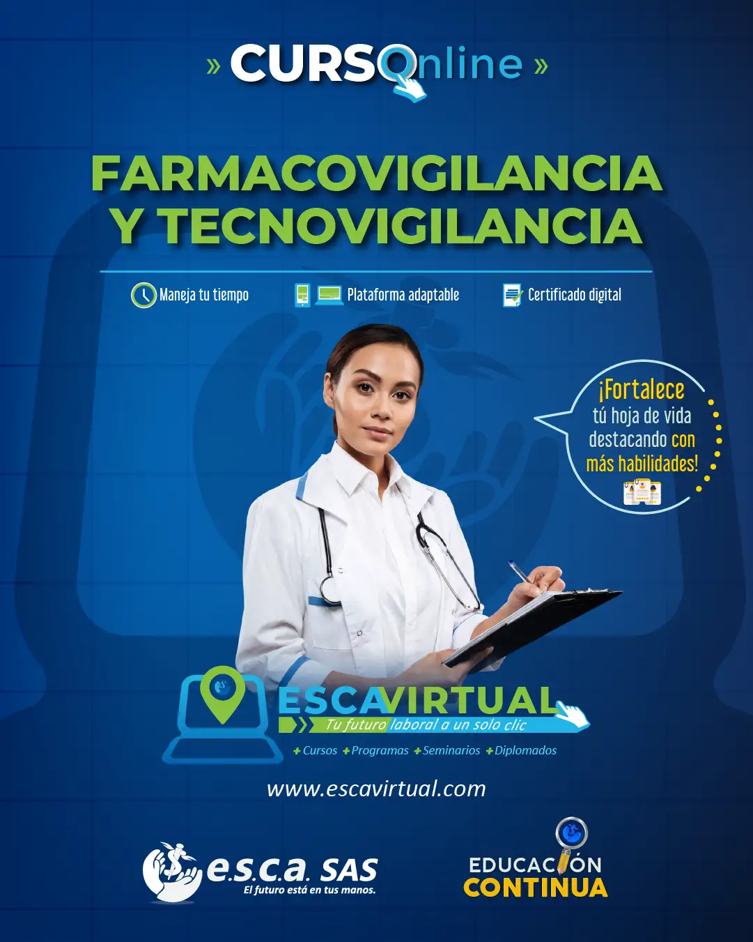 Capacitación a profesionales de la salud en la gestión de programas, cumplimiento normativo y mejora continua de la seguridad del paciente en hospitales y farmacias. Aprende sobre la seguridad de medicamentos (farmacovigilancia) y dispositivos médicos (tecnovigilancia), enfocándose en la detección, análisis y reporte de reacciones o incidentes adversos para proteger la salud del paciente.